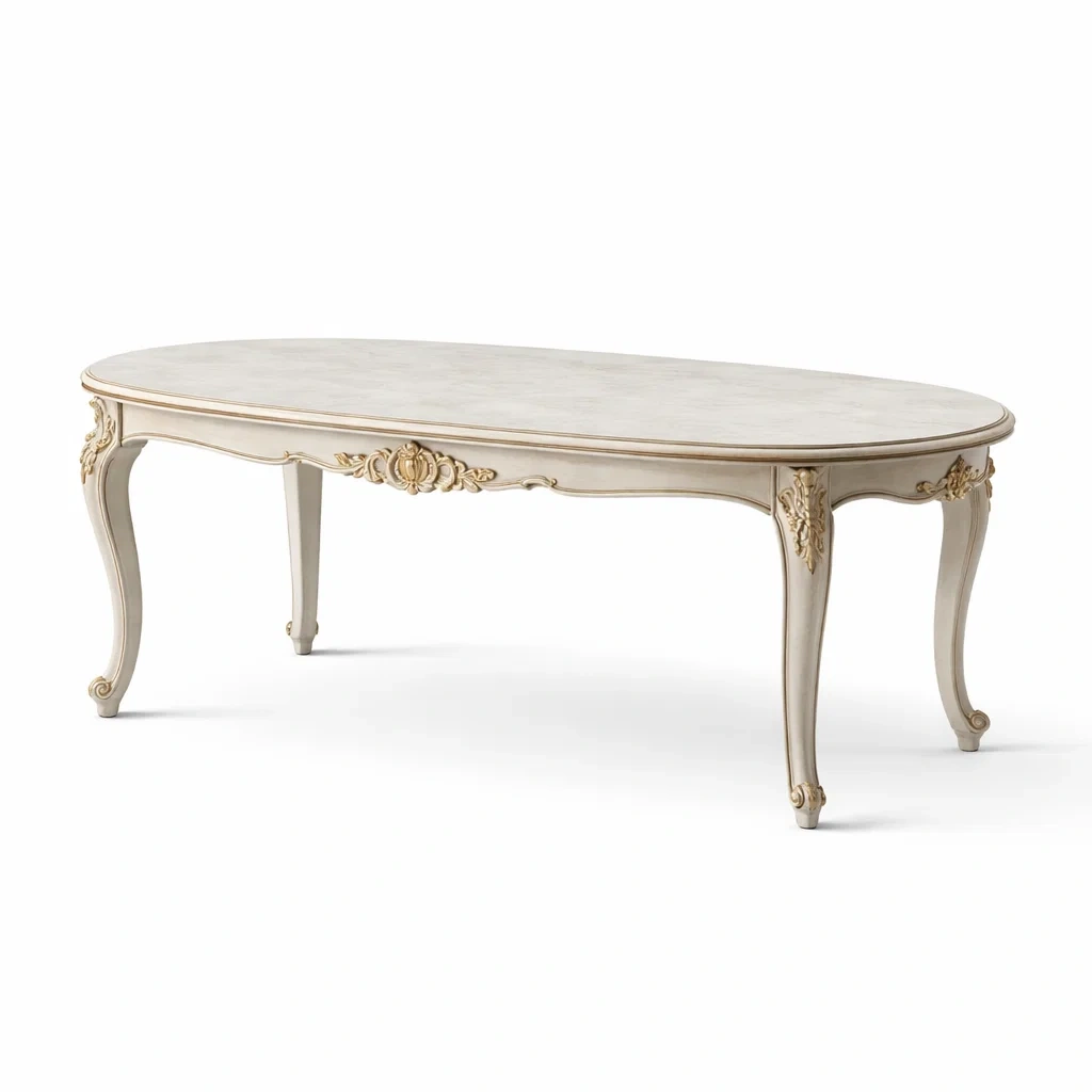 Tavolo ovale in legno di mogano avorio 240x120x78 cm
