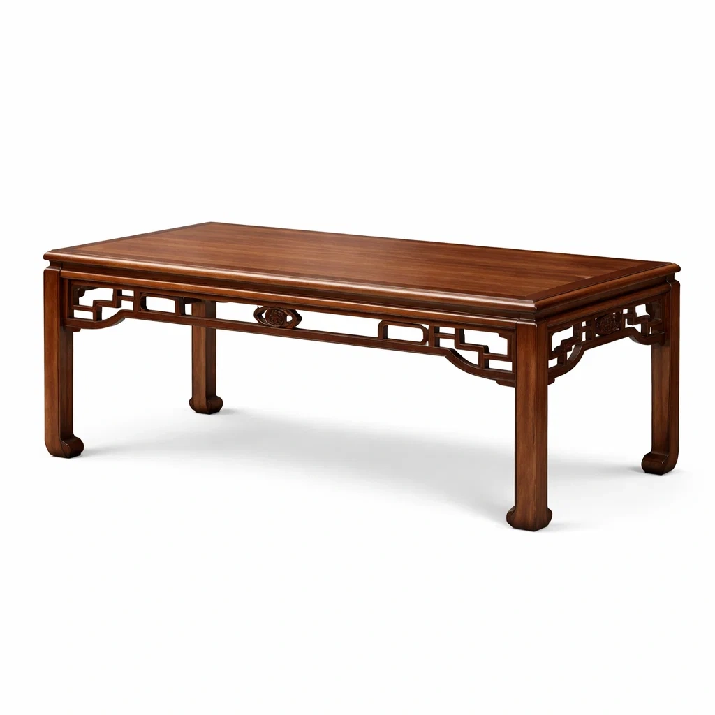 Tavolo rettangolare in legno marrone con decorazioni intagliate 140x80x75 cm